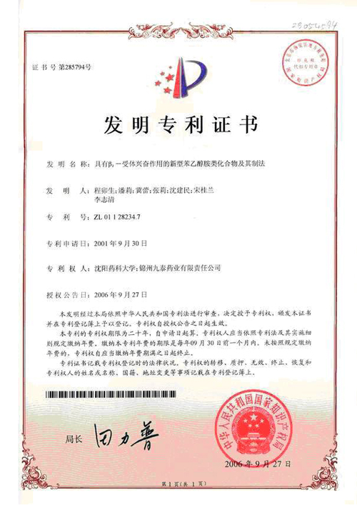 該產(chǎn)品正處于Ⅲ b臨床研究階段,已獲七項(xiàng)專利證書(shū)。 錦州九泰藥業(yè)與沈陽(yáng)藥科大學(xué)合作開(kāi)發(fā)的國(guó)家一類新藥鹽酸川丁...